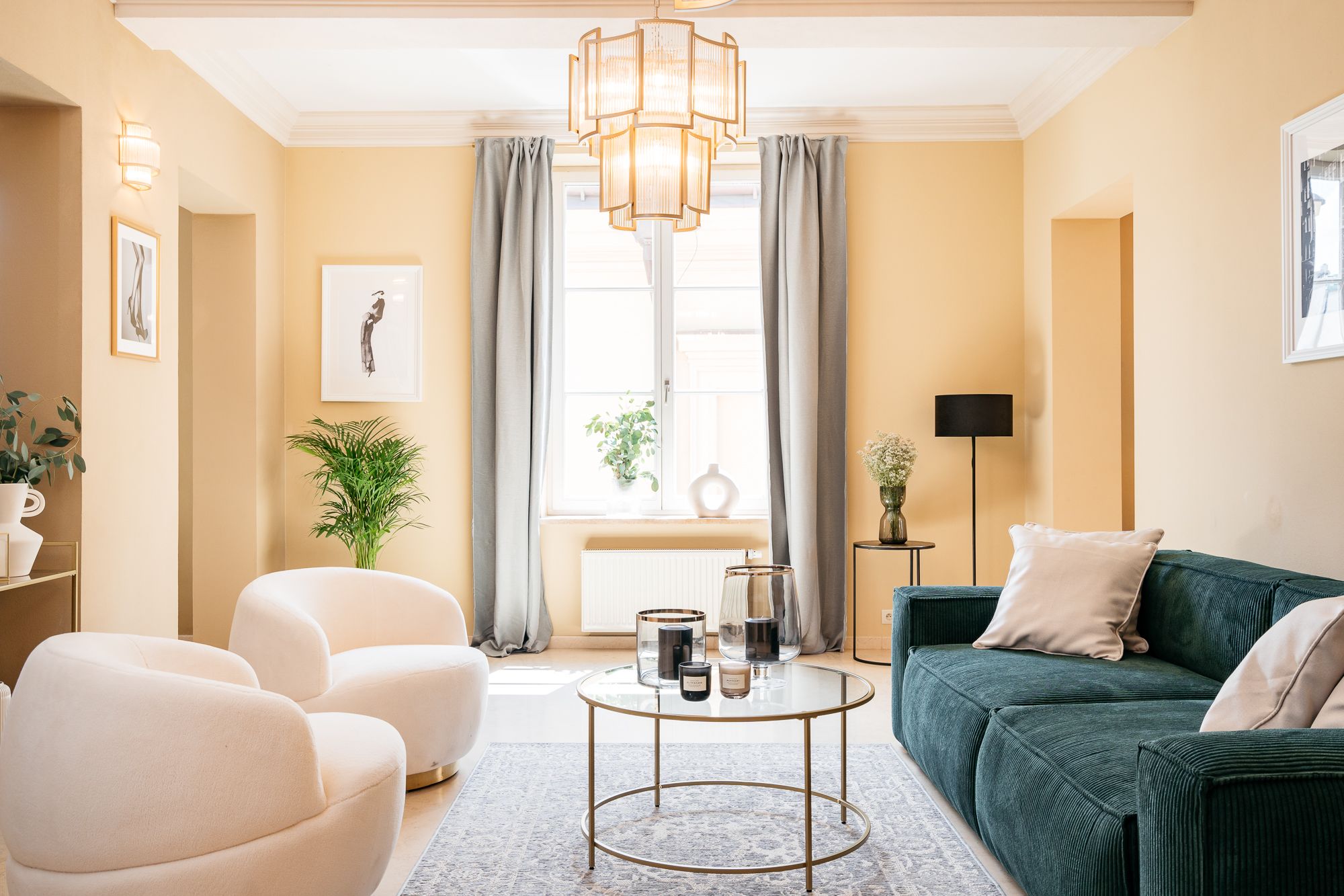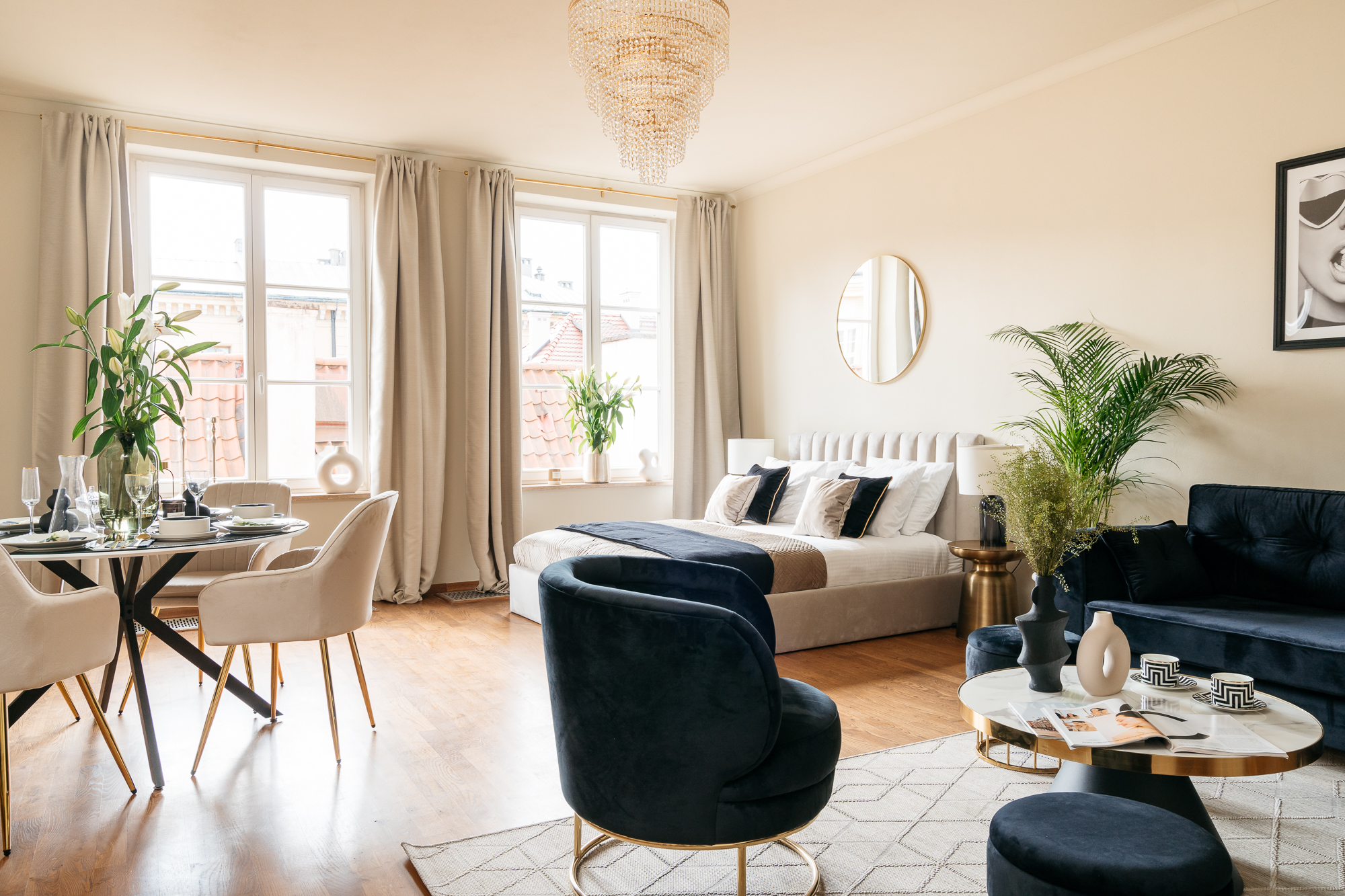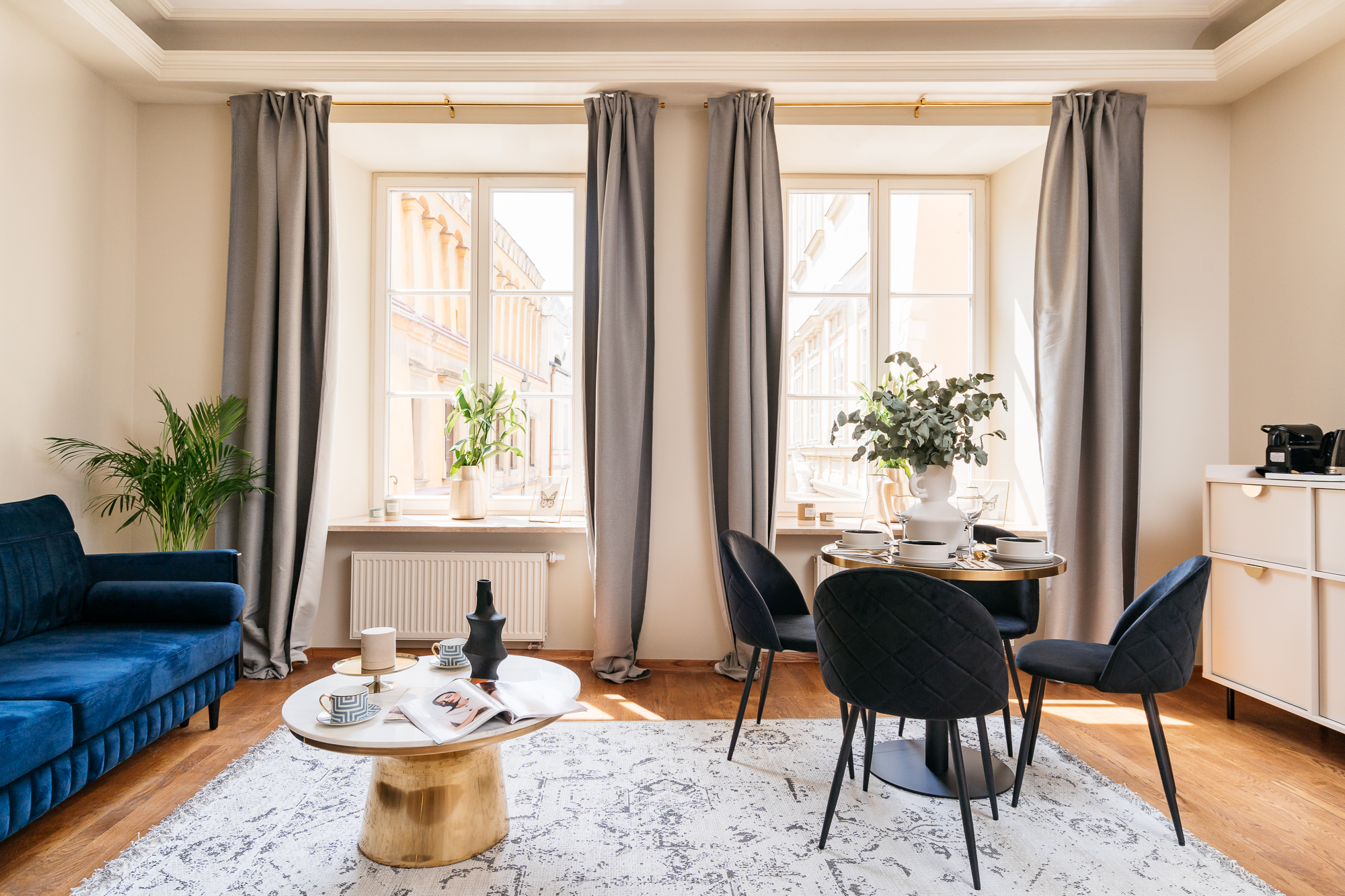 W historycznej kamienicy przy Krakowskim Przedmieściu historia została napisana na nowo — nowoczesne apartamenty z nutą loftowego wykończenia zapraszają do podziwiania na widoki starówki Warszawskiej przy porannej kawie i spacer na plac Zamkowy tuż za rogiem.