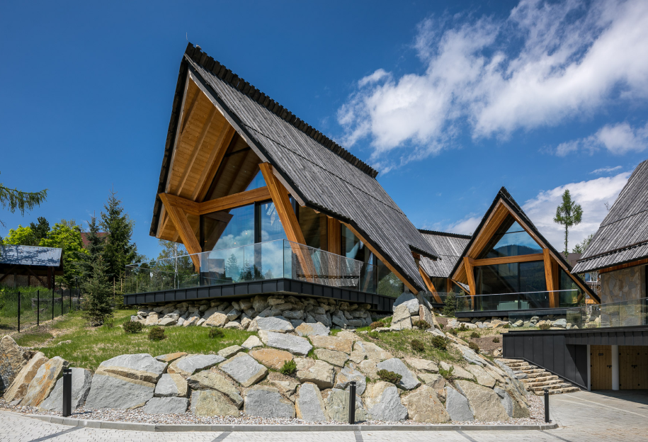 Odkryj wyjątkowe miejsce w sercu Podhala w niezwykłej, nagradzanej w międzynarodowych konkursach architektonicznych, inwestycji luksusowych domków z widokiem na Giewont